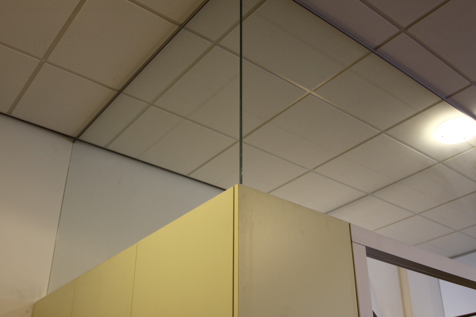 Voor een spreekruimte zijn scheidingswanden geplaatst en verder opgetrokken met een glazen afwerking. Het totale schilderwerk is door ons verzorgd.